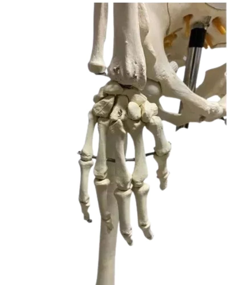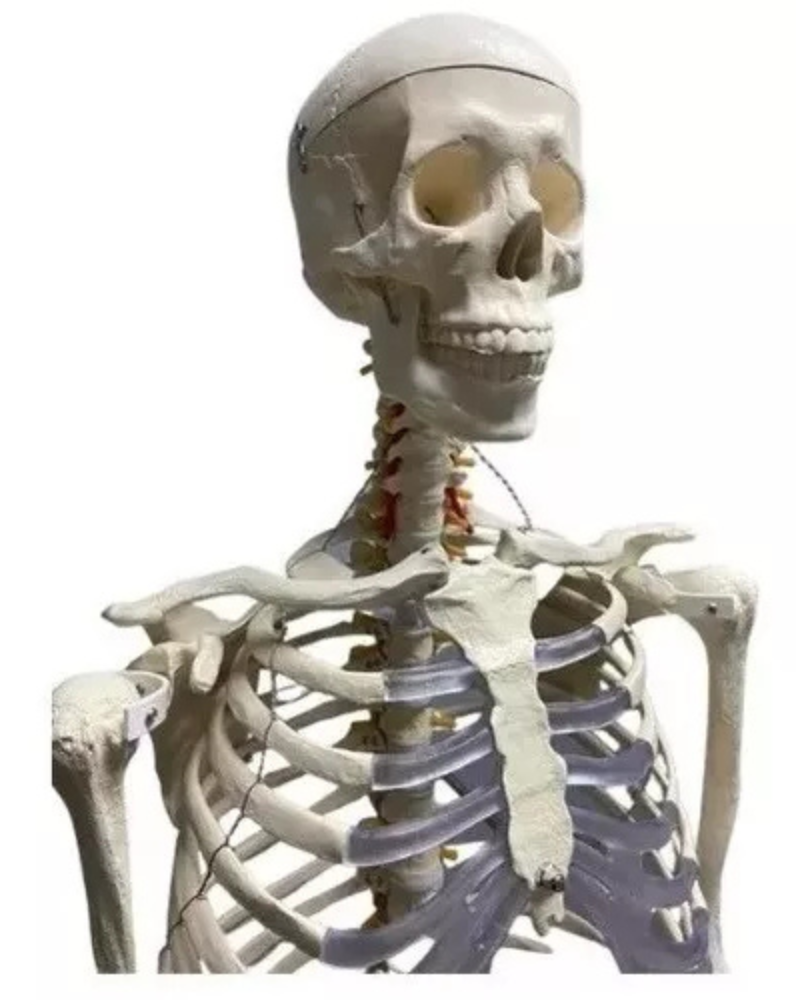 Com uma altura de 1,70 metros, este esqueleto de resina é uma réplica fiel do esqueleto humano, permitindo um estudo detalhado da estrutura óssea humana. Cada osso é cuidadosamente modelado para representar com precisão a forma e a textura dos ossos humanos.