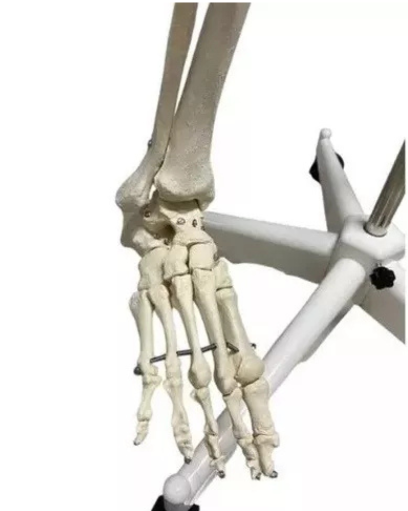 Este esqueleto é totalmente articulado, permitindo que você mova as articulações para demonstrar a biomecânica humana. As rodas na base facilitam o transporte, tornando-o uma adição prática e funcional para qualquer sala de aula ou consultório médico.