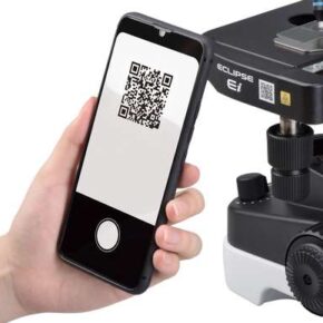 Através do simples reconhecimento de um QR code, os alunos podem acessar rapidamente o Guia Online em seus smartphones para aprender de forma independente a manusear o microscópio.